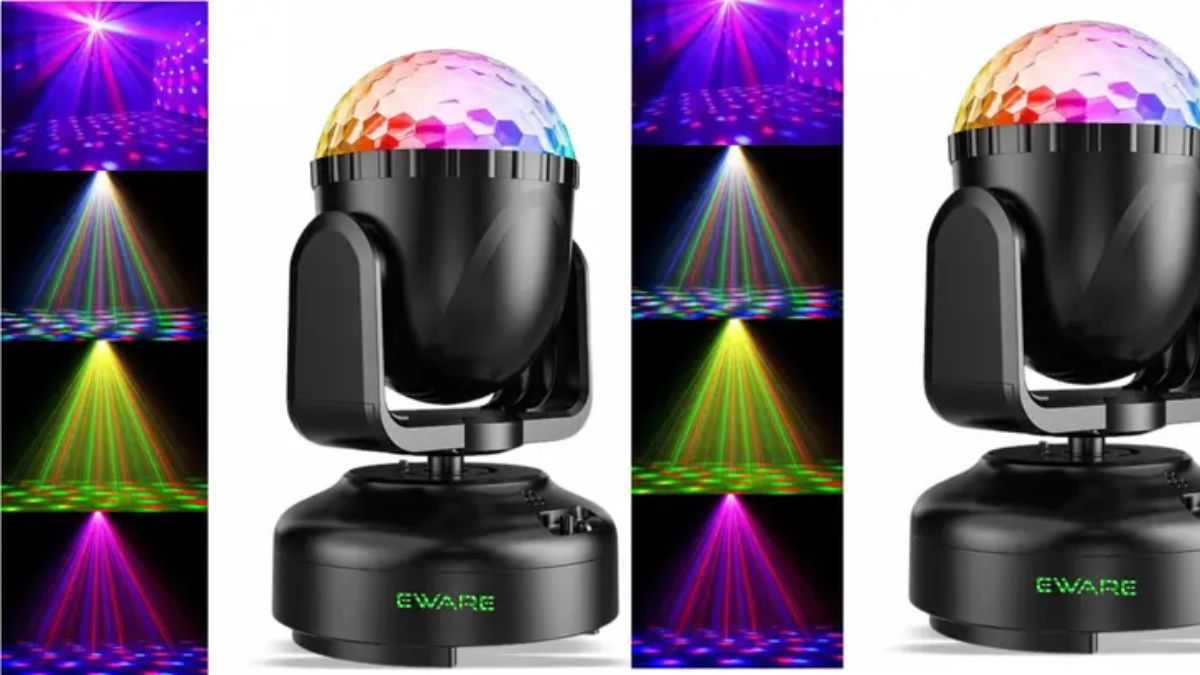 These are smart sensor lights from Eware. They have a multi-functional LED light system. They have been designed with an RGB disco ball, laser projection, and a strobe effect. This all-in-one light system will turn a simple room into a dance floor with its effects. This is a compact device, easy to carry anywhere. These are of 45 watts, which poses a lower risk of overheating compared to higher-powered devices. They are sound-activated and can be controlled by remote. The lights also change patterns with changing music beats, making it a great addition for parties. This device would make parties more fun. They are also easy to install. This has a lightweight design with a mounting bracket, making it easy to install on high platforms. This device has been made with high-quality materials and has a built-in cooling system, ensuring long-lasting use.