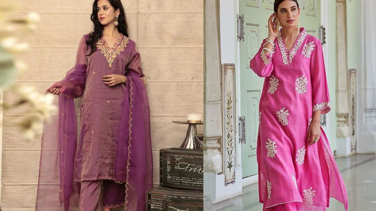 - When wearing a heavy work kurti set, make sure that the jewellery is not too over the top so that it does not overwhelm the entire look, and takes the eyes away from your stylish kurti. Also, for this design, try and go with nude and beige footwear like platform heels to complete the look.