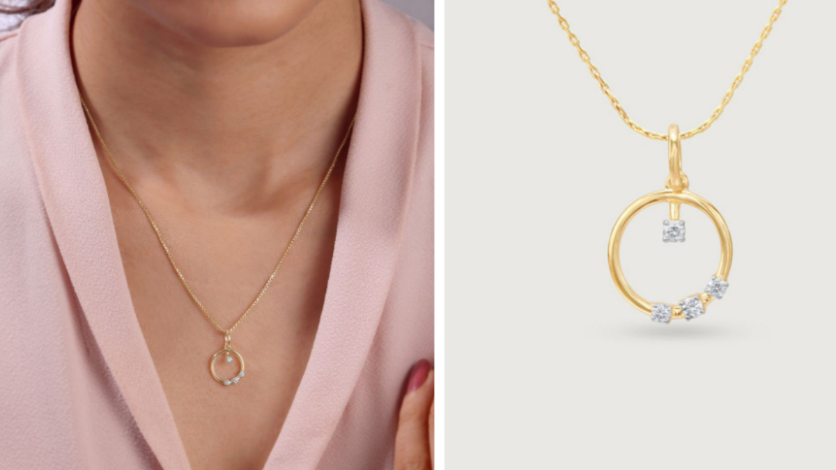 Elegantly made, this 14KT gold diamond pendant has the very light and lovely loop design that twinkles. It is a necklace that can be worn by people who like simplicity and luxury at the same time. Very light and chic, it goes perfectly with both the ethnic and western outfits and adds up to their beauty. It can be a perfect gift for birthdays, or an anniversary surprise, or simply be the case of a woman wanting to invest in her wardrobe. This pendant is one of the most expected and favorite choices among the most picked ones during the EORS sale.